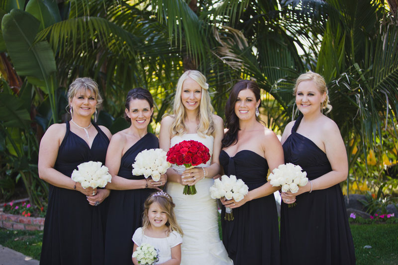 A romantic blend of red roses and tall beautiful white and green centerpieces were used for this wedding on board one of San Diego's most famous boats. What a beautiful couple and a perfect backdrop for a military wedding. Photographs courtesy of brettandemilyphoto.com